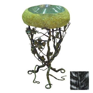 #Natural granite boulder vessel. Grapevines twist upon themselves and reach upward to cradle the sink basin. Integrated wall anchor in back for safety. For use with wall mount faucet. Warranty: One year limited. Made from forged iron. Oil rubbed bronze color. Assembly required. 22 in. W x 22 in. D x 36 in. H (150 lbs.) Bathroom drama sanctioned by nature. Quiescence's vineyard sink pedestal is a unique and beautiful addition to any powder room.