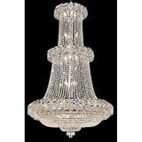 Belenus 32 Light Chandelier with Crystal Finish: Chrome, Crystal Trim: Elegant CutECA2G42C/EC Finish: Chrome, Crystal Trim: Elegant Cut Features: -Chandelier.-Available in Royal Cut, Elegant Cut, Spectra Swarovski and Strass Swarovski crystal trims. Includes: -120'' Chain / wire included. Options: -Available in Gold and Chrome finishes. Color/Finish: -Crystal color: Clear. Specifications: -Accommodates: 32 x 60 - 1920W Max 110V-125V (Candelabra) bulb. Dimensions: -Hanging weight: 140.-Height: 66''. Collection: -Belenus collection.