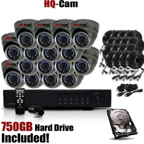 HQ-Cam® 16CH H.264 Real-time Network Security Surveillance DVR Recording System With 16x Night Vision Weatherproof Cameras Included 750 GB HDD?Power Supply and Cable