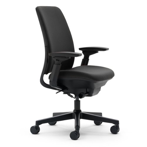FeaturesBack tension adjustment knob, Height-adjustable LiveLumbar support, Seat Slider, and 4-way adjustable armsAwarded Gold Best of NeoCon 2007 in the ergonomic seating category. Amia Chair by Steelcase promotes dynamic movement and sitter control. This elegant office chair incorporates Alive Seating technology to support natural movement of the body. Innovative seat flexors move up and down the backrest so anyone seated fits comfortably for long hours of serious sitting.10-year Steelcase warranty. Amia Chair by Steelcase - Black Frame and Base - Black Fabric?