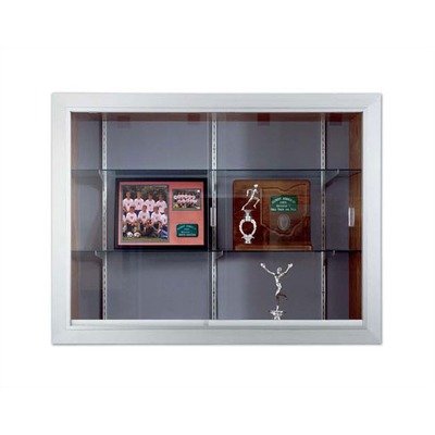 Series 70 Recessed Hinged Glass Door Trophy Cases - Burlap Fabric Lighting: No Lighting, Size: 4' H x 4' W, Burlap Color: Light Gray?70404BF29 Lighting: No Lighting, Size: 4' H x 4' W, Burlap Color: Light Gray Features: -Recessed style prevents hindering walking space.-Perimeter trip facing is satin anodized aluminum with a 3/4'' birch plywood box and 3/16'' tempered safety glass doors.-Sliding doors operate on tracks with nylon rollers for smooth movement.-Doors have ground finger pulls and five-pin tumbler lock(s).-3/16'' tempered safety glass shelving with brackets at a depth of 12''.-Three rows of shelving per unit.-Tops and bottoms of cases are 3/4'' birch veneer plywood. Options: -Available in a range of sizes. Specifications: -Optional 110V fluorescent lighting accessed through main case. Dimensions: -16'' depth on all cases. Warranty: -10 year warranty.